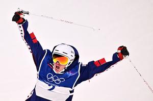 (260221) -- LIVIGNO, 21 febrero, 2026 (Xinhua) -- Connor Curran, de Estados Unidos, festeja durante la final 1 de aerials por equipos mixtos de esquí acrobático en los Juegos Olímpicos de Invierno Milán-Cortina 2026, en Livigno, Italia, el 21 de febrero de 2026. (Xinhua/Hu Chao) (da)