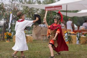 (250824) — PTUJ, 24 agosto, 2025 (Xinhua) — Imagen del 23 de agosto de 2025 de un participante portando un traje romano mientras toca la trompeta militar romana curva durante el Festival de los Juegos Romanos, en Ptuj, Eslovenia. La 18 edición del festival de los Juegos Romanos comenzó el viernes en Ptuj y durará hasta el 24 de agosto. (Xinhua/Zeljko Stevanic) (oa) (da)(250824) — PTUJ, 24 agosto, 2025 (Xinhua) — Imagen del 23 de agosto de 2025 de participantes portando trajes de soldados romanos mientras esperan para presentar sus habilidades militares durante el Festival de los Juegos Romanos, en Ptuj, Eslovenia. La 18 edición del festival de los Juegos Romanos comenzó el viernes en Ptuj y durará hasta el 24 de agosto. (Xinhua/Zeljko Stevanic) (oa) (da)(250824) — PTUJ, 24 agosto, 2025 (Xinhua) — Imagen del 23 de agosto de 2025 de niños portando disfraces de romanos, mientras juegan durante el Festival de los Juegos Romanos, en Ptuj, Eslovenia. La 18 edición del festival de los Juegos Romanos comenzó el viernes en Ptuj y durará hasta el 24 de agosto. (Xinhua/Zeljko Stevanic) (oa) (da)
