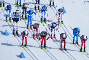 (260208) — TESERO, 8 febrero, 2026 (Xinhua) — Atletas compiten durante el esquiatlón 10 km +10 km masculino de esquí de fondo de los Juegos Olímpicos de Invierno Milán-Cortina 2026, en Tesero, Italia, el 8 de febrero de 2026. (Xinhua/He Canling) (rtg) (ah)