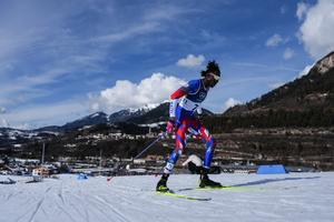 (260208) — TESERO, 8 febrero, 2026 (Xinhua) — Stevenson Savart, de Haití, compite durante el esquiatlón 10 km +10 km masculino de esquí de fondo de los Juegos Olímpicos de Invierno Milán-Cortina 2026, en Tesero, Italia, el 8 de febrero de 2026. (Xinhua/Peng Ziyang) (rtg) (ah)